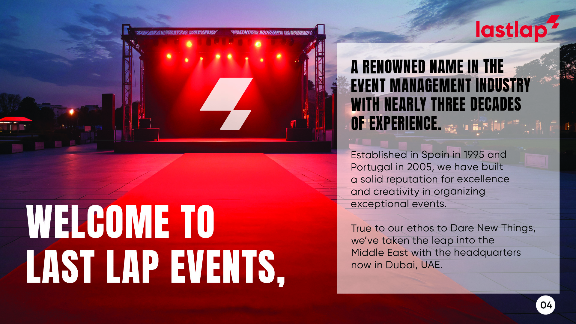 The redesigned company profile successfully transformed Last Lap Event Company’s brand presentation into a professional, visually engaging, and corporate-ready marketing asset.